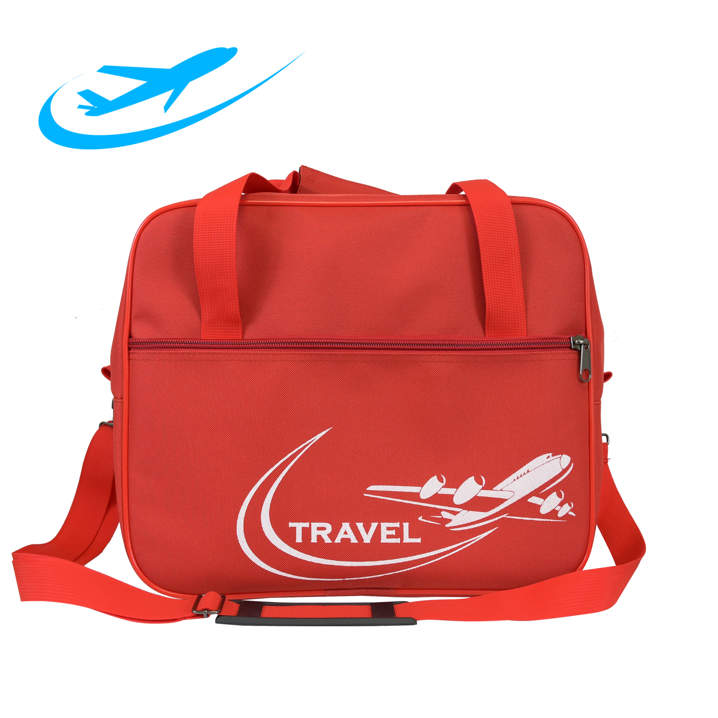 Дорожная сумка предназначена для транспортировки личных вещей, в качестве ручной клади авиакомпании Победа. Изготовлена из прочного водоотталкивающего материала на ПВХ основе. Внутренние швы окантованы. Содержит вместительный основной отдел, на передней стенке один большой карман и карман на задней стенке, используемый также как держатель на выдвижной ручке чемодана. Дно укреплено специальными материалами, установлены четыре пластиковые пукли - ножки. Ручки с текстильным ручкодержателем, уменьшающим давление на ладонь. Фурнитура металлическая. Сумка оснащена длинным съёмным регулируемым ремнем с резиновым наплечником.